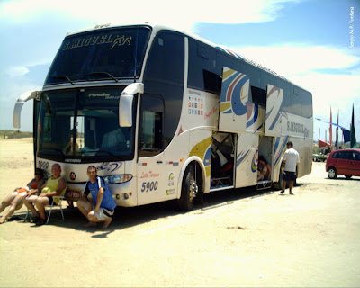 2011, 4 de fevereiro. Dispostos a conhecer e aproveitar a praia do Cassino (Rio Grande, RS), estes bravos excursionistas saíram de Passo Fundo às 19:40 h, viajando a noite toda [com paradas estratégicas], algo em torno de 650 km, através das BRs 285, 158 e 392, chegando direto às areias da praia, próximo aos molhes, no outro dia de manhã.