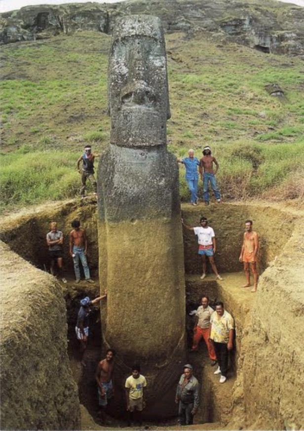 Um grupo de pesquisa privado tem escavado recentemente as estátuas da Ilha da Páscoa e está estudando as escrituras nos corpos das mesmas.